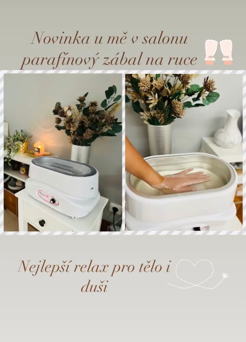 Teplá parafínová koupel rukou je příjemnou procedurou.
